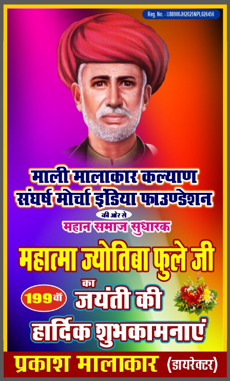 रामानुजगंज (बलरामपुर): स्थानीय गांधी मैदान में आज महान समाज सुधारक और आधुनिक भारत में महिला शिक्षा के अग्रदूत महात्मा ज्योतिबा फुले की 199वीं जयंती गरिमामय ढंग से मनाई गई। ‘माली मालाकार कल्याण संघर्ष मोर्चा इंडिया फाउंडेशन’ के तत्वावधान में आयोजित इस विशेष कार्यक्रम में बड़ी संख्या में नागरिकों ने हिस्सा लिया।