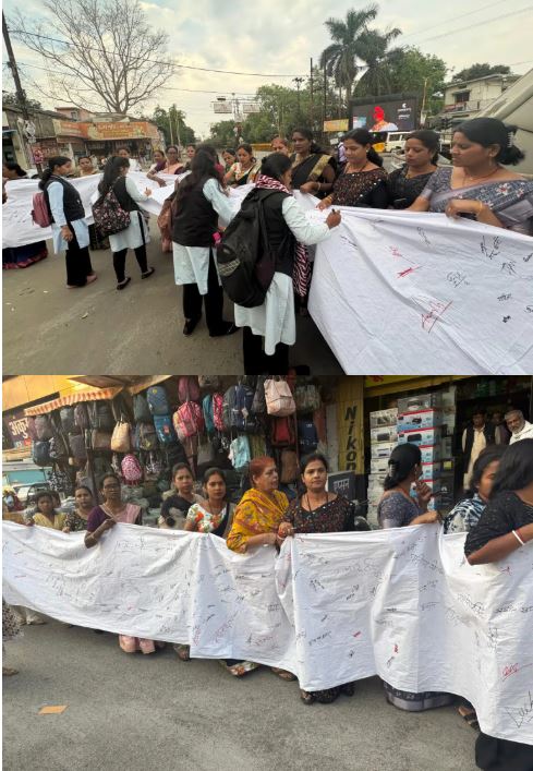 1. हस्ताक्षर अभियान: शहर में बढ़ते नशे और अपराध के खिलाफ महिला कांग्रेस ने मोर्चा खोल दिया है। 11 मीटर लंबी साड़ी पर हस्ताक्षर कर राष्ट्रपति के नाम ज्ञापन भेजा जा रहा है।