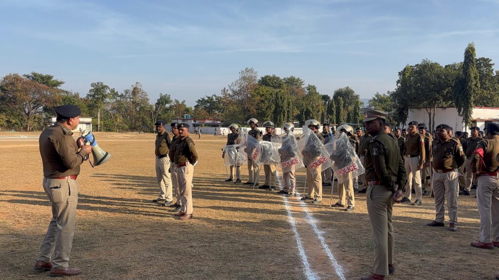 पुलिस अधीक्षक वैभव बैंकर (IPS) के मार्गदर्शन में आयोजित इस ड्रिल में जिले के करीब 150 अधिकारी और कर्मचारी शामिल हुए। रक्षित निरीक्षक विमलेश देवांगन द्वारा बल को अलग-अलग टीमों में विभाजित कर दंगा नियंत्रण और उग्र भीड़ को तितर-बितर करने का गहन अभ्यास कराया गया।