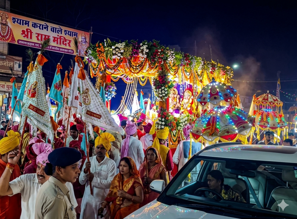 विशेष आकर्षण: फूलों से सजा भव्य रथ और पुष्प वर्षा
