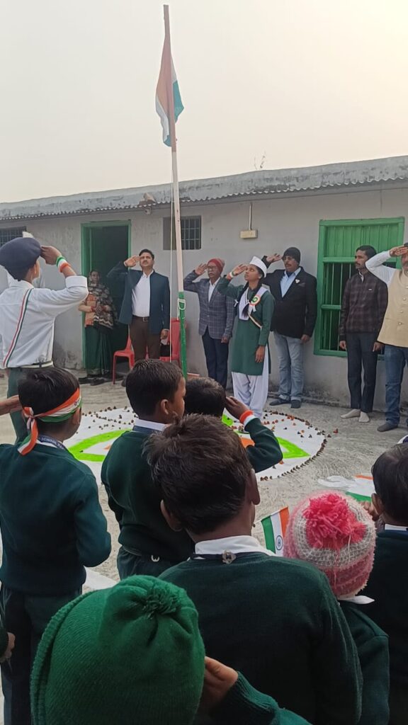 गणतंत्र दिवस के पावन अवसर पर विद्यालय के सह-व्यवस्थापक आदरणीय अजय तूती जी ने उदारता और दूरदर्शिता की मिसाल पेश की। जब विद्यालय के प्राचार्य अशोक कुमार गुप्ता जी ने उन्हें मुख्य अतिथि के रूप में ध्वजारोहण के लिए आमंत्रित किया, तो उन्होंने स्वयं झंडा न फहराकर, विद्यालय की छात्र संसद की प्रमुख (प्रधानमंत्री) खुशबू कश्यप को यह गौरवपूर्ण अवसर प्रदान किया। विद्यालय परिसर ‘भारत माता की जय’ के नारों से गूँज उठा जब एक छात्रा के हाथों तिरंगा आसमान की ऊंचाइयों को छूने लगा।