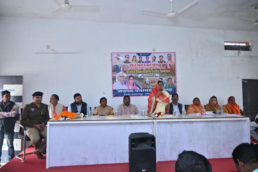 शंकरगढ़/बलरामपुर: बलरामपुर जिले के शंकरगढ़ विकासखंड में आज ‘विकसित भारत- गारंटी फॉर रोजगार एंड आजीविका मिशन ग्रामीण’ (VB-G RAM-G) के अंतर्गत ब्लॉक स्तरीय पंचायत सम्मेलन का भव्य आयोजन किया गया। इस महत्वपूर्ण कार्यक्रम में सामरी विधायक श्रीमती उद्देश्वरी पैकरा मुख्य अतिथि के रूप में उपस्थित रहीं।